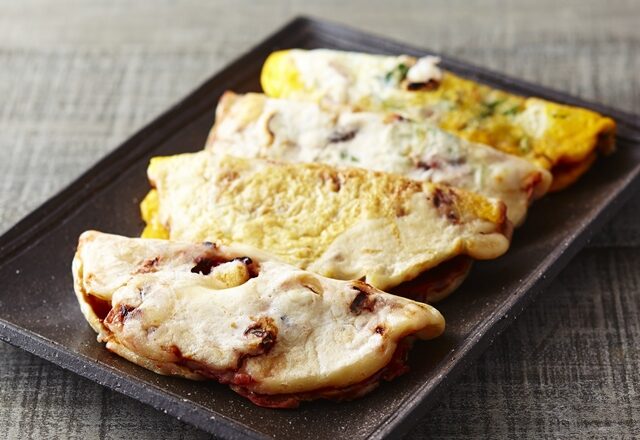 生地に玉子を加えて一緒にプレスした一番人気。ボリュームとコクが格段にアップし、満足度が非常に高い一品です。