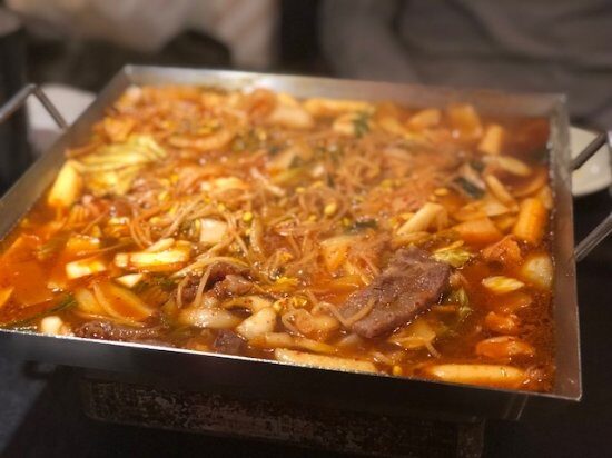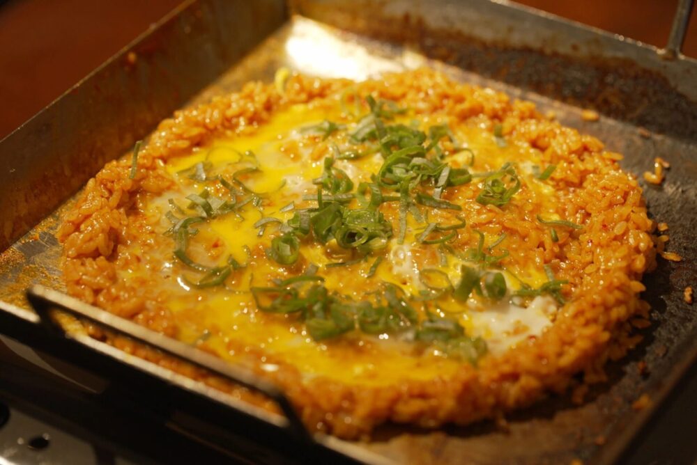 店内に入ると、鉄板の上でごま油とニンニク、ニラが焼ける強烈に食欲をそそる香りが充満しています。