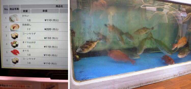 ただ安いお皿を狙うのではなく、店内の生簀でさっきまで泳いでいた「活〆(いけじめ)」のネタをピンポイントで狙い撃ちする。
