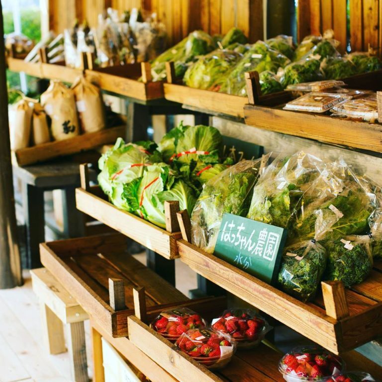 直売所には、地元のおじいちゃん・おばあちゃんが大切に育てた新鮮な朝採れ野菜が並びます。