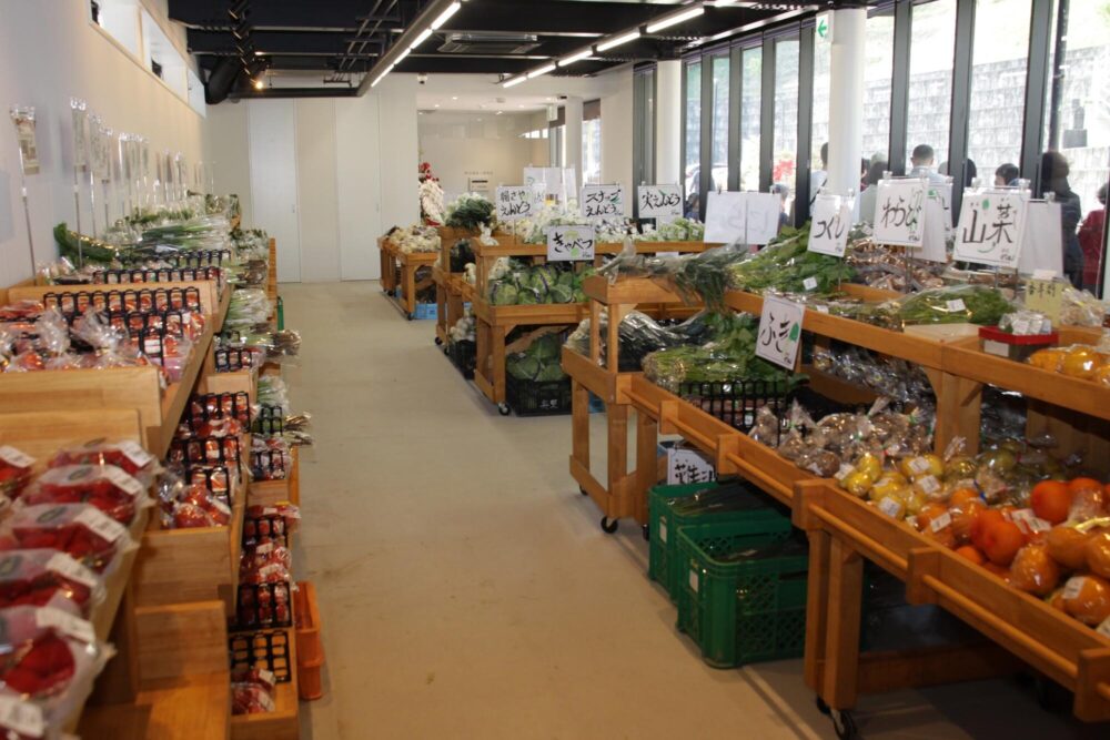 まずは1階の直売所で、地元のお母さんたちが作った新鮮な野菜や特産品をじっくり品定め。