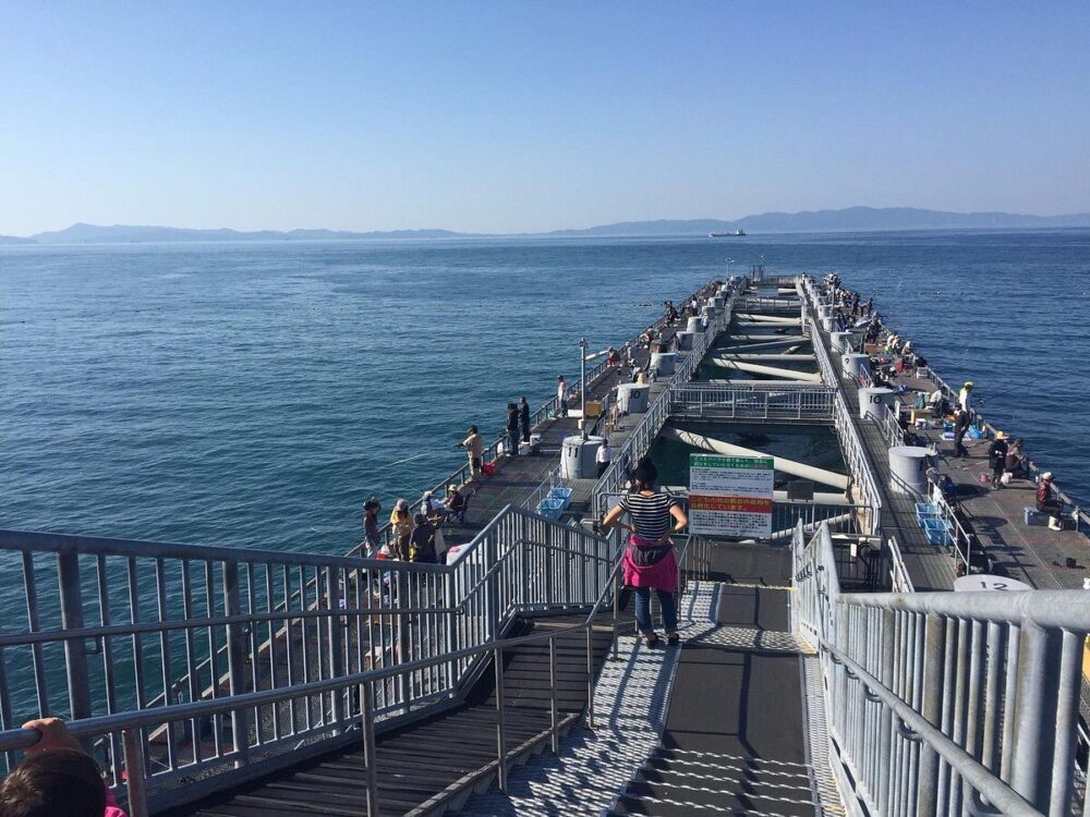午後に訪問し、展望デッキで潮風を感じながら売店の軽食を楽しむ。