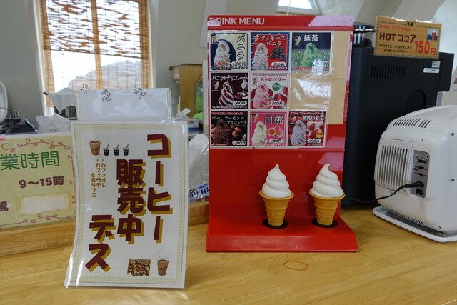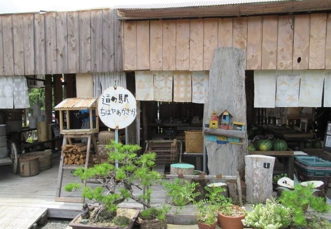 2階建ての小さな木造建築が目印の、素朴で親しみやすい道の駅です。
