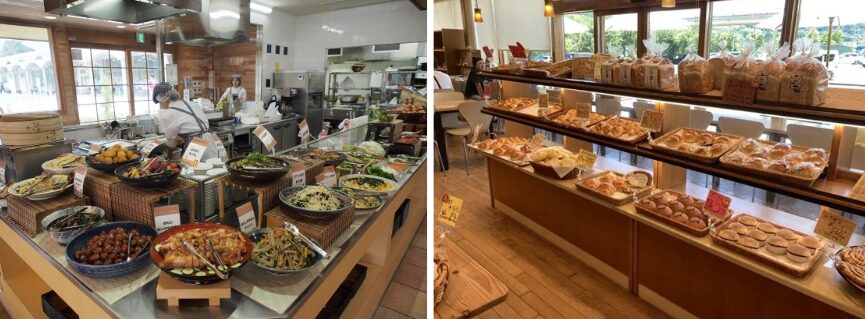 巨大な農産物直売所を中心に、手作り惣菜が人気のビュッフェレストラン体験交流館などがゆったりと配置されています。