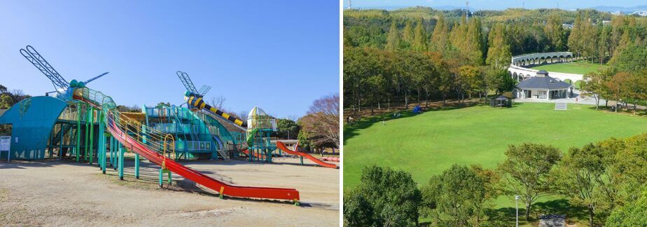 午後は隣接する「蜻蛉池公園」へ足を運び、お子様は思い切り遊び、大人は四季の花々を愛でながらベンチでゆったりと休憩を。