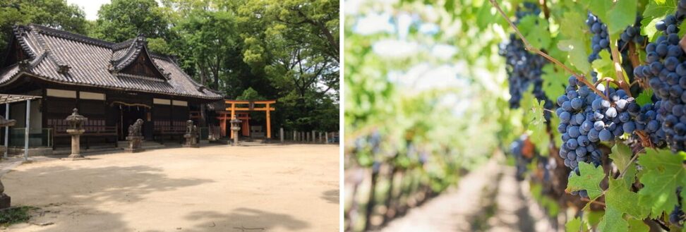 午後は広場で遊び、ぶどう狩りや世界遺産の古墳群を巡る。