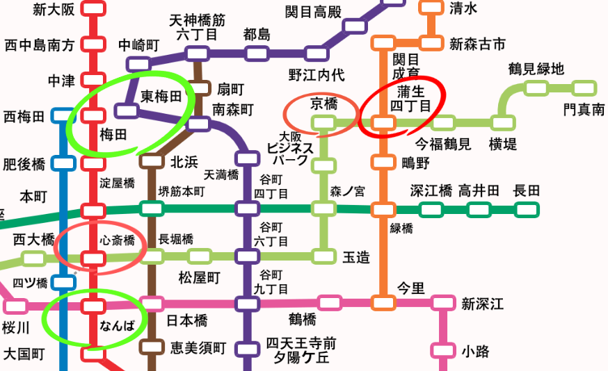- 御堂筋線と四つ橋線をダブルで使いこなし、大阪市内を縦横無尽に移動したい人