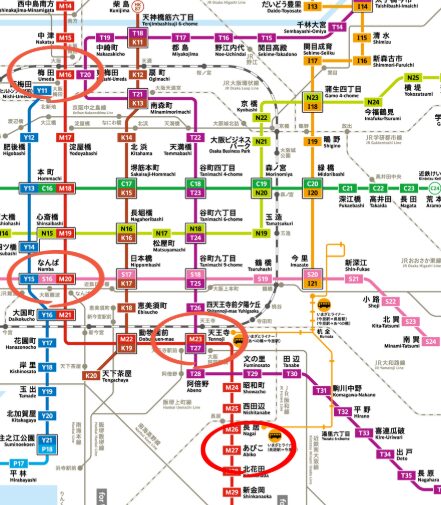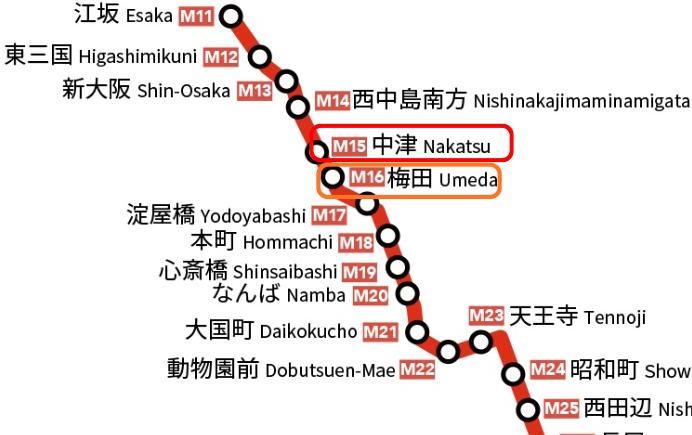 大阪メトロ(御堂筋線など):あびこや中津が該当