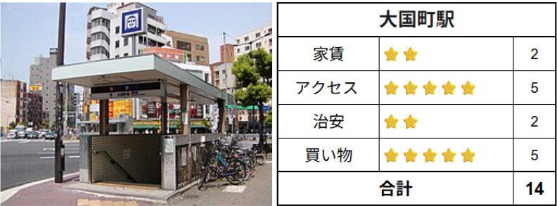 | 8 | 大国町駅(浪速区) | 14 | 2 | 5 | 2 | 5 | 買い物環境は満点! 難波隣駅で時間と食の豊かさを買う人 |