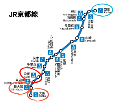 - 新大阪駅まで:JR京都線で乗り換えなし約5分
