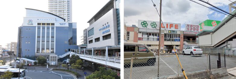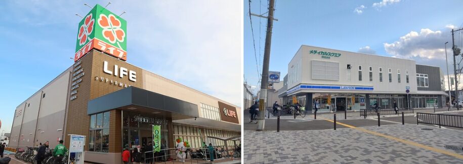 また、逆側にも駅直結で大型スーパー「ライフ」もあり、西側・東側共に死角なしの構造になっています。