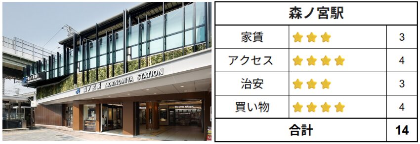| 6 | 森ノ宮駅(中央区) | 14 | 3 | 4 | 3 | 4 | 自然と都会の融合! 大阪城公園を庭にして健康に暮らしたい人 |